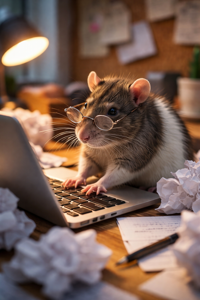 Jetzt, über 45 Jahre später, merke ich: Die Leseratte ist zur Schreibratte mutiert. Klammheimlich. Schleichend. Und wie ein Damoklesschwert hängt nun diese Frage über meinem rauchenden Kopf. Warum tust du dir das an?